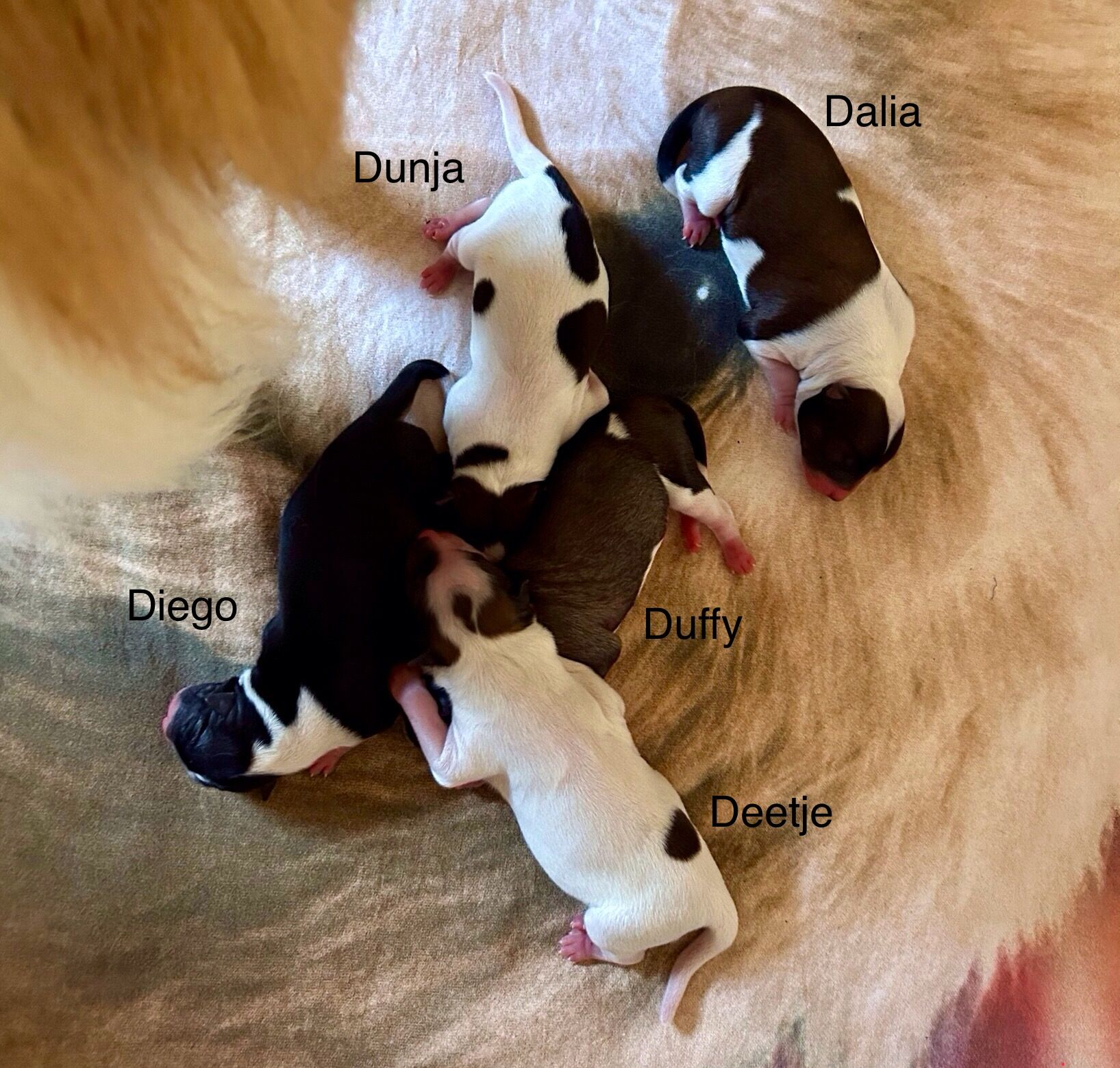 Bea und Carlo sind am 02. November 2025 Eltern von fünf wunderschönen Welpen geworden. Alle sind gesund und den Welpen, wie auch Bea geht es prima.