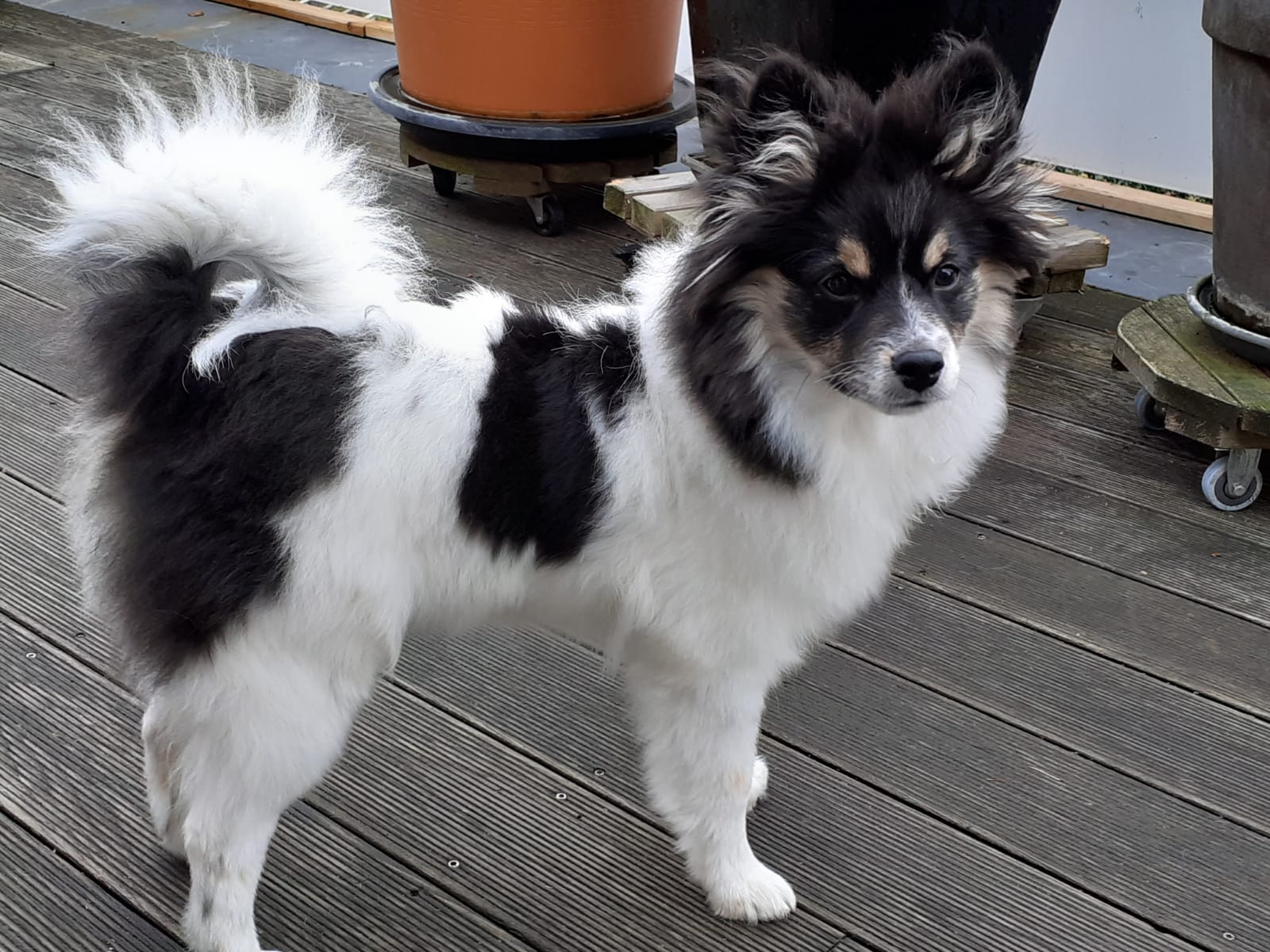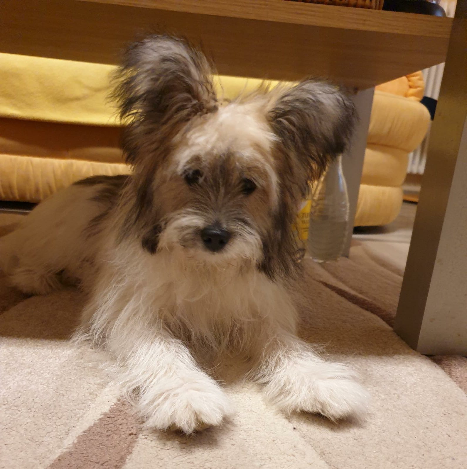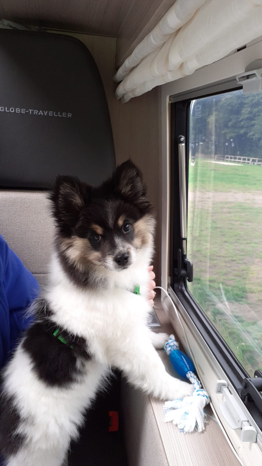 Hündin mit pflegeleichten Fell. Spiel- und apportierfreudig, enge Bindung zur Familie. Ausgeglichen, belastbar, friedlich, folgsam. Kinderfreundlich, gelehrig und wachsam. Sicher bei optischen und akustischen Reizen,  Sicher im Ringtest. Freundlich zu anderen Menschen und Hunden. Sehr gute Leinenführigkeit, keine Futterverteidigung, gut abrufbar, kann problemlos alleine bleiben.